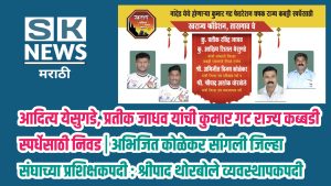 आदित्य येसुगडे, प्रतीक जाधव यांची कुमार गट राज्य कब्बडी स्पर्धेसाठी निवड अभिजित कोळेकर सांगली जिल्हा संघाच्या प्रशिक्षकपदी : श्रीपाद थोरबोले व्यवस्थापकपदी (तासगाव प्रतिनिधी) नांदेड येथे
