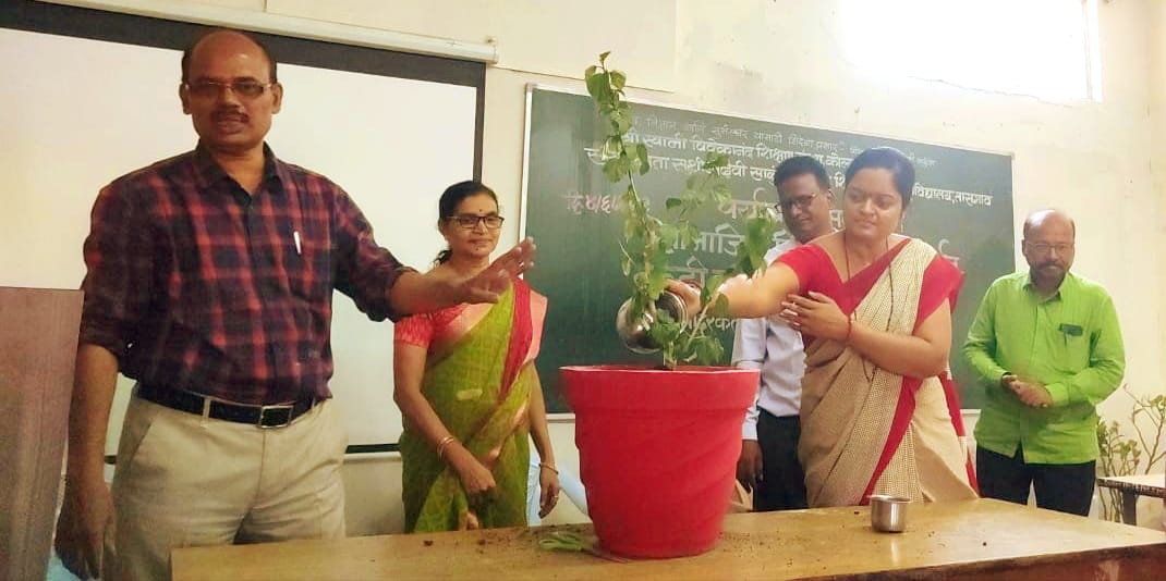 तासगाव -निसर्गाचा समतोल राखण्यासाठी आणि पर्यावरणाच्या रक्षणासाठी सर्वांनी वृक्षारोपण केले पाहिजे,प्रत्येक विद्यार्थ्याने आपल्या वाढदिवसाला किमान एक झाड लावावे आणि ते जगवण्याचा प्रयत्न करावा. कुंडी मधील झाडे ही आपल्या घराची शोभा तर वाढतातच पण आपल्याला मुबलक प्रमाणात ऑक्सिजन उपलब्ध करून देतात,असे प्राचार्य डॉ.बी.एम.पाटील यांनी पर्यावरण दिनाच्या कार्यक्रमात सांगितले.