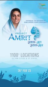 21 फेब्रुवारी, 2023:- संत निरंकारी मिशनमार्फत स्वातंत्र्याच्या अमृत महोत्सवी वर्षानिमित्त सद्गुरु माता सुदीक्षाजी महाराज व निरंकारी राजपिताजी यांच्या पावन सान्निध्यात रविवार, दिनांक 26 फेब्रुवारी, 2023 रोजी ‘अमृत परियोजने’ अंतर्गत ‘स्वच्छ जल – स्वच्छ मन’ अभियानाचा शुभारंभ करण्यात येणार आहे.