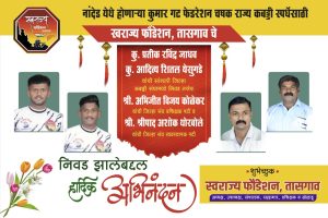 नांदेड येथे होणाऱ्या कुमार गट फेडरेशन चषक राज्य कबड्डी स्पर्धेसाठी सांगली जिल्ह्याच्या संघात तासगाव येथील स्वराज्य फाउंडेशनचे खेळाडू आदित्य शितल येसुगडे व प्रतीक रवींद्र जाधव यांची निवड झाली आहे. तर अभिजीत विजय कोळेकर यांची सांगली जिल्हा कबड्डी संघाच्या प्रशिक्षकपदी तसेच श्रीपाद अशोक थोरबोले यांची व्यवस्थापकपदी निवड झाली आहे.